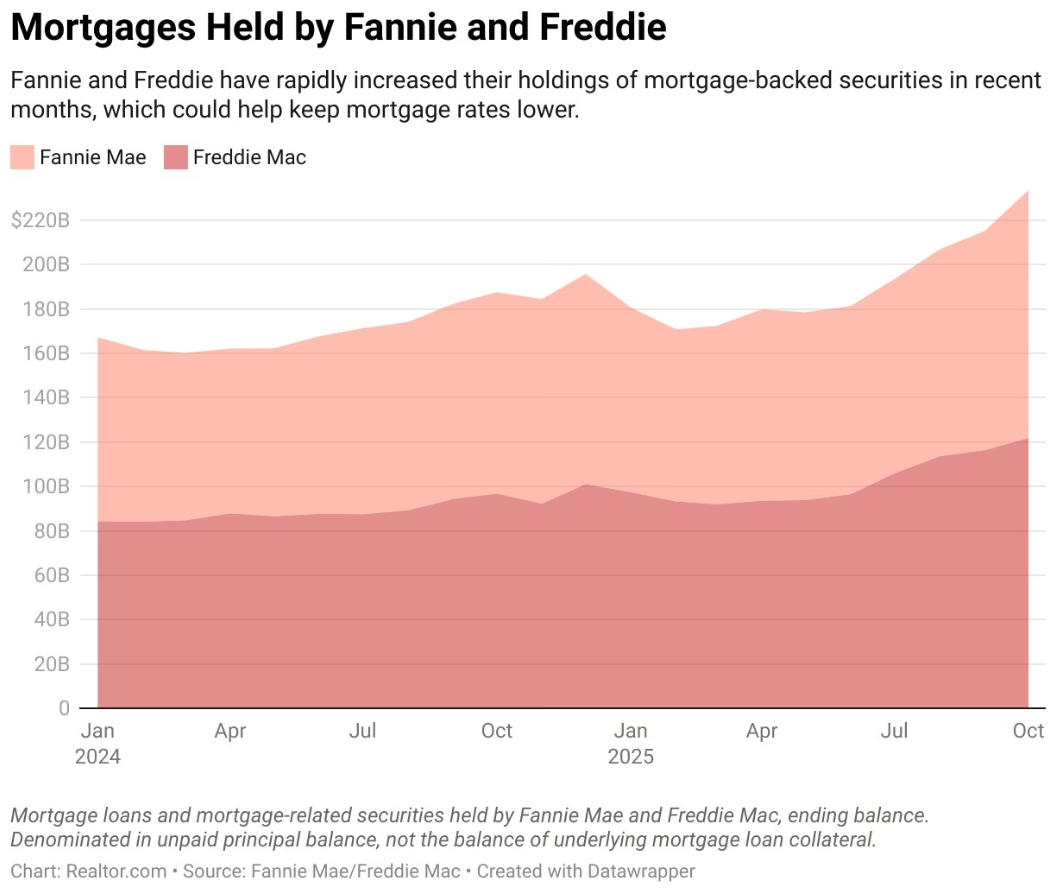 Fannie Mae and Freddie Mac have vastly increased their holdings of mortgage-backed securities in recent months, which may have ripple effects that could help push mortgage rates lower.
